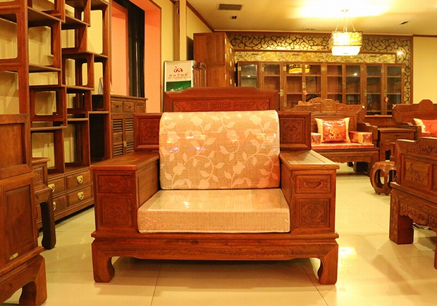 紅木家具,作為我們民族的古老家具,其歷史發展悠久,自明清以來就深受人們的喜愛與歡迎,而在我國家具歷史的各個演變發展過程中也產生了各類樣式的坐具、椅子,看如今當下眾多的紅木沙發系列,其設計元素與之風格亦大多以此為參照、效仿,譬如將圈椅稍加改進后組合而成的十件套圈椅沙發以及以皇宮寶座風格為設計元素稍加改進后的祥云寶座沙發等,這些可謂是將中式古典家具之韻味元素完完全全地融入到了現代派客廳沙發系列里面,古香古韻。