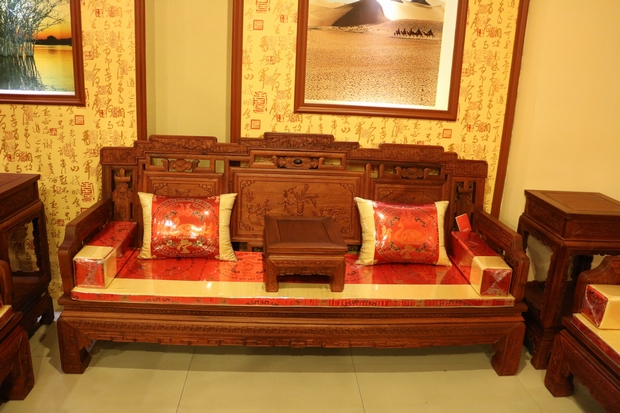 而今天,筆者要給大家介紹的這一款紅木家具沙發——福臨門沙發,正是一款為了表達人們這一初衷和愿望,用以其承載美好的向往和精神寄托的上等紅木沙發。該款沙發同樣采用的是福林堂紅木所擅長的優質緬花而制作,整體做工表現精良精湛,雕刻圖案豐富多樣,筆鋒縱橫飽滿有力,在沙發的正面,高幾、角幾各處以及小平幾的上方還刻畫了許多以昭示"福到"之意的優美圖畫圖案,古人們神話故事傳說中的宏偉事跡等,用手輕撫摸之,給人以身臨其境之感,畫面代入感極其強烈,可以感受到,那畫筆縱橫交錯的洶涌的海水,蜿蜒有秩形態各異的各種古器法寶圖案,還有那原木所自帶散發出來的淡淡的清香,古樸而讓人難以釋懷忘卻。
